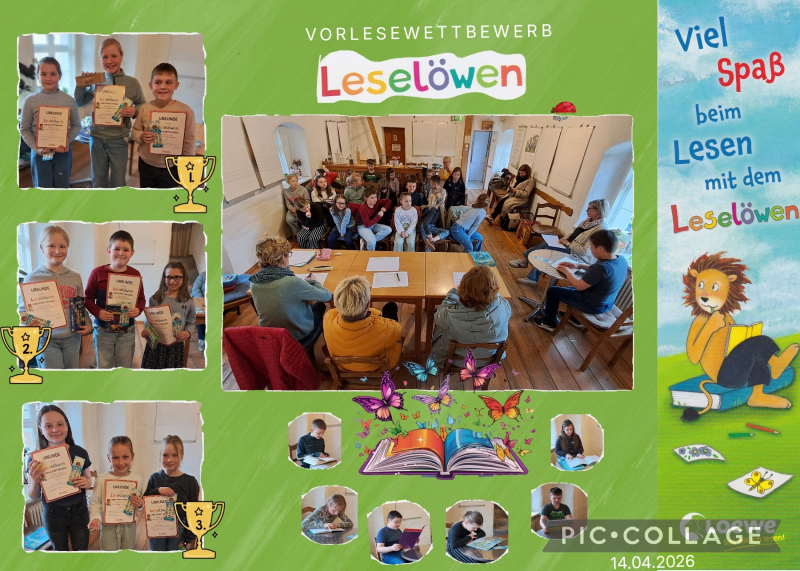 Am 14.04.2026 fand im Zuckerhut unser diesejähriger “LESELÖWEN” Vorlesewettbewerb statt. Dazu haben sich von den Klassenstufen 2-4 die besten beiden Leser aus jeder Klasse qualifiziert.