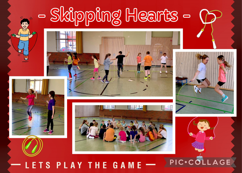 Am 11.12.2023 nahmen die dritten Klassen am Projekt „Skipping Hearts“ teil. Frau Rips von der Deutschen Herzstiftung führte mit den Kindern ein Training im Bereich Rope Skipping (sportliche Form des Seilspringens) durch. Im Team konnten unsere Schülerinnen und Schüler Schnelligkeit, Kraft und Ausdauer, aber auch Koordination, Beweglichkeit und Rhythmusgefühl verbessern und hatten jede Menge Spaß.