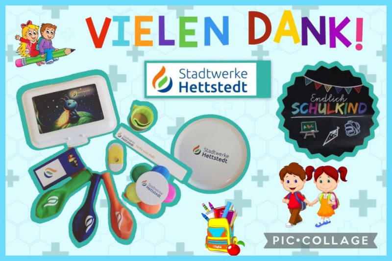 Unsere Kinder wurden zur Einschulung mit einer bunten Tüte mit vielen tollen Sachen von den Stadtwerken Hettstedt überrascht.